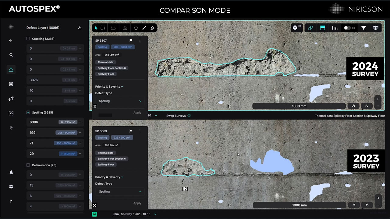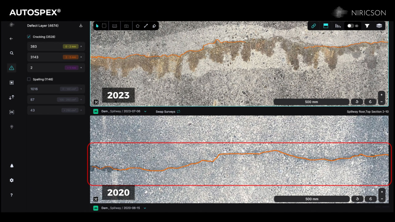 Rather than relying solely on qualitative notes, AUTOSPEX enables measurable tracking of deterioration. Changes can be observed and quantified across specific areas of interest, structural zones, or known problem locations.