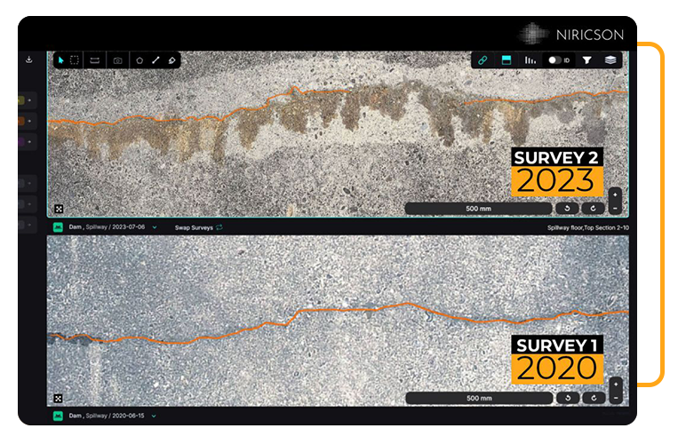 By establishing a digital baseline at project handover, future inspections can be compared side-by-side using Change Detection and Comparison Mode – providing clear, defensible evidence if defects worsen during or beyond the warranty period. For example, cracks may continue to form even years after concrete placement.